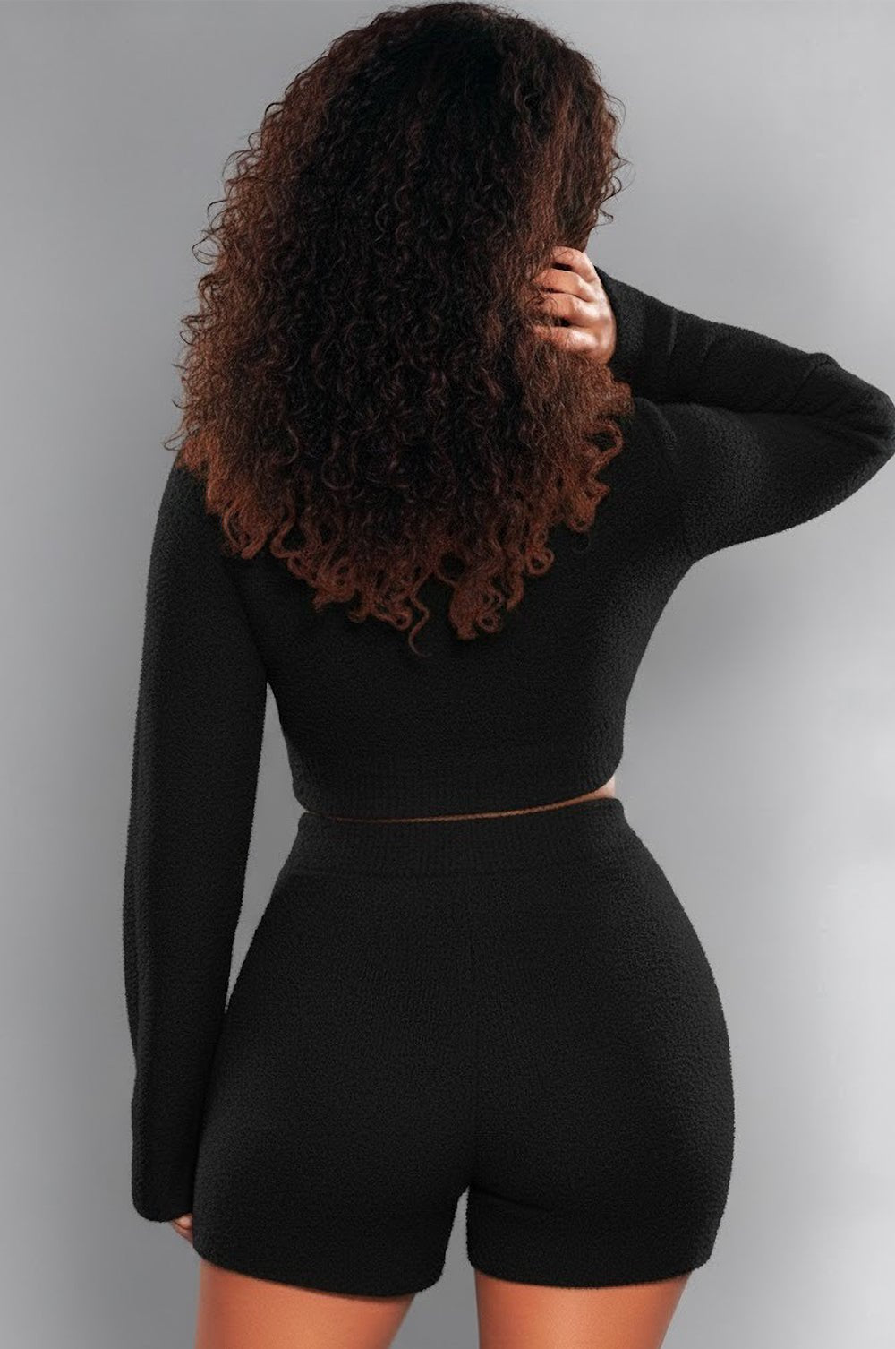 Regular price $34.92An effortless escape into comfort. This Black Bouclé Bell Sleeves Shorts Two Piece Set is crafted from plush, cloud-soft bouclé that feels like a gentle reset. With a relaxed yet refined silhouette, this set is made for quiet moments, soft mornings, and embracing ease and chic comfort.
