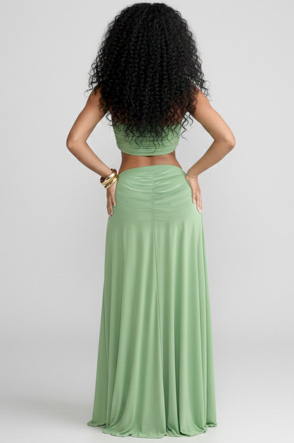 Regular price $97.81Effortlessly luxe, the Sage Off-Shoulder Ruched Draped Skirt Two-Piece Set delivers modern goddess energy with a vacation-ready feel. Fully lined and double layered for a buttery soft smooth finish, the off-the-shoulder top features a cropped design. The matching skirt includes a ruching scrunch-butt design to enhance curves from every angle. Crafted from a stretchy, body-hugging fabric, this set is perfect for sunset dinners, resort nights, and elevated escapes.