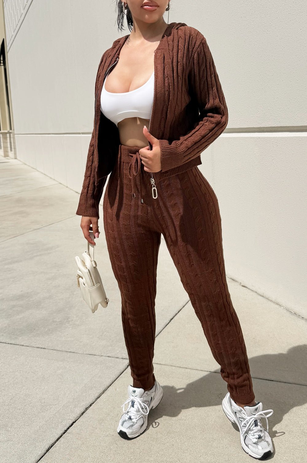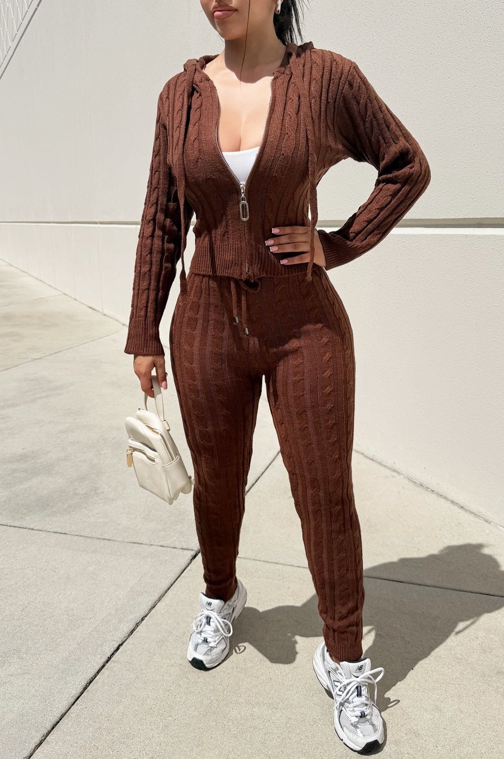 Regular price $44.99Cozy up in this deliciously decadent two-piece set featuring a rich chocolate cable knit hoodie paired with matching leggings. The textured knit design adds dimension and warmth, while the relaxed fit keeps you comfortable all day long. Perfect for lounging, running errands, or staying snug.